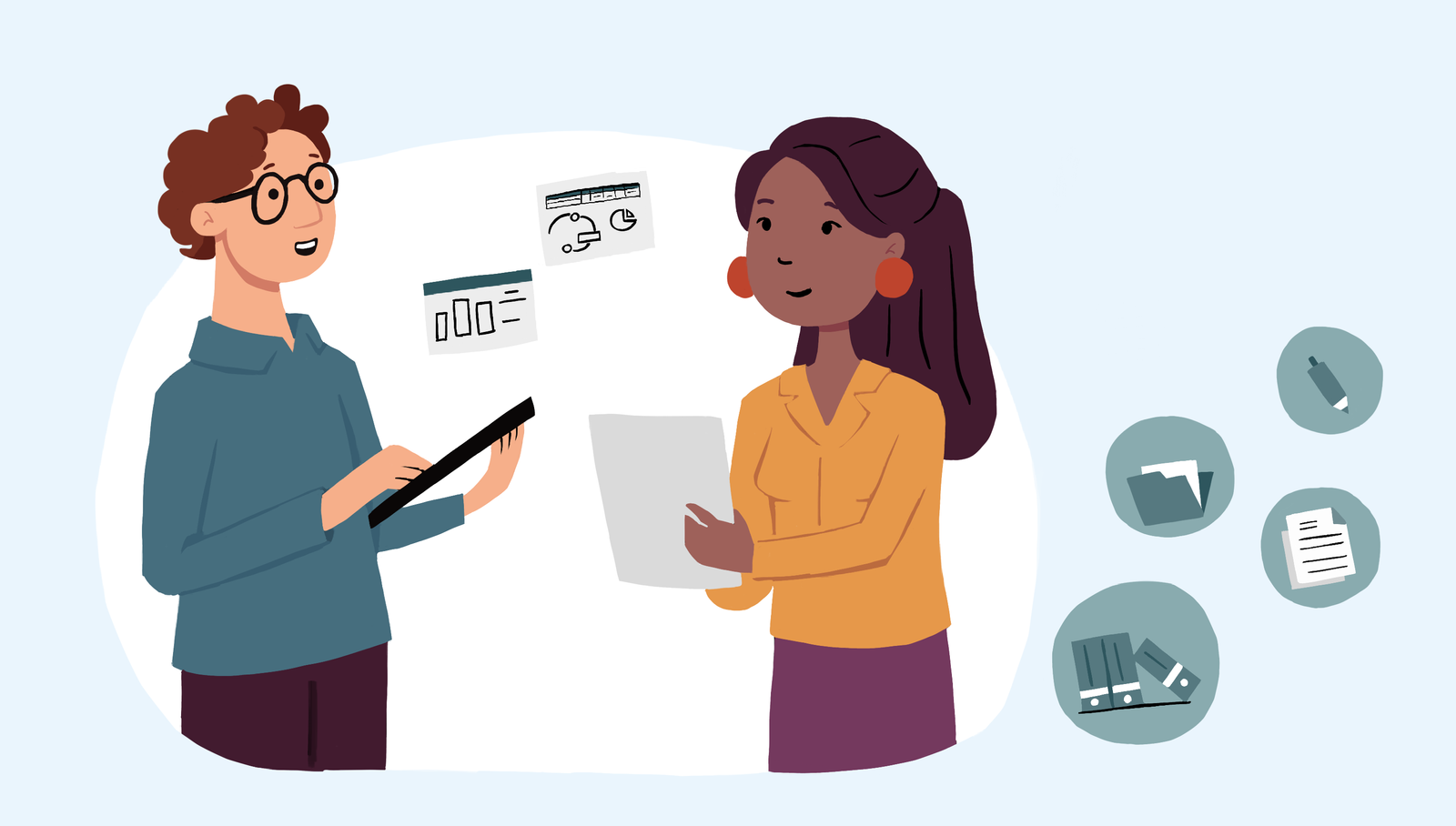 Mise en relation par e-mail ou par téléphone pour discuter de vos besoins, de la durée de la mission, du mode d'envoi des documents et de la fréquence de mes prestations.